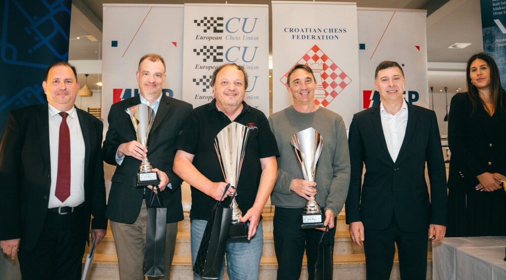 After having defended the French colors on several occasions, notably during the Chess Olympiads (bronze medal in 2004 in Calvià, Mallorca, Spain), the Grand Master Jean-Marc Degraeve has just won his first European title at the 2025 50+ European Championship (Rabac, Croatia, 27 September – 5 October). Unbeaten, Jean-Marc Degraeve won, alone leading with 7 out of 9 points ! He obtains the European title and will be qualified for the 50+ world championship.
